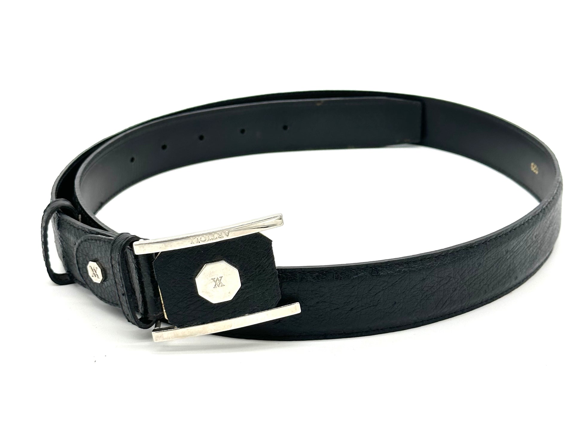 Ceinture Artioli en autruche noir avec boucle en argent