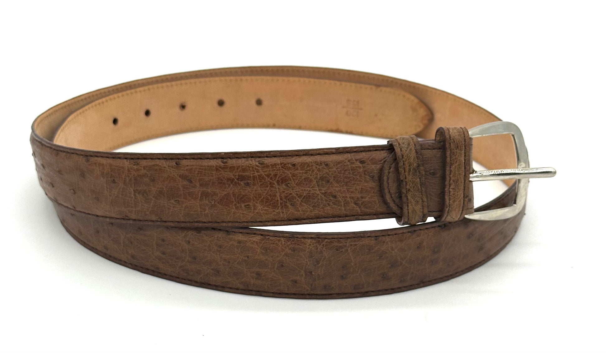 Ceinture Roberto Celk en autruche marron clair avec boucle en argent. Fabriqué à la main en Italie.