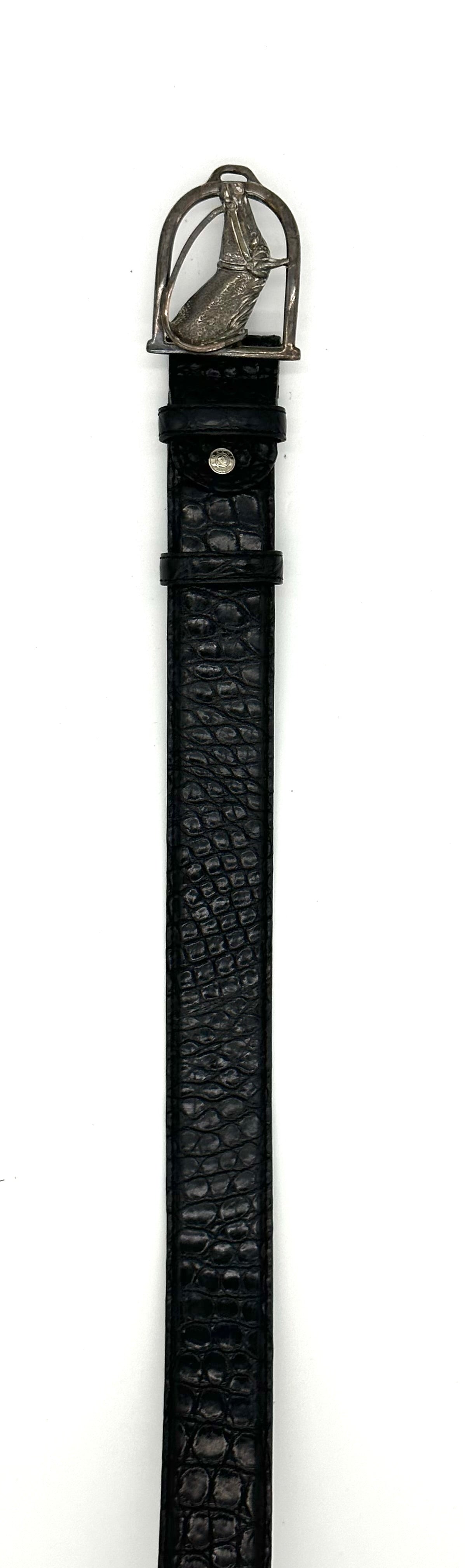 Ceinture Roberto Celk en crocodile noir avec boucle tête de cheval en argent. Fabriqué à la main en Italie.
