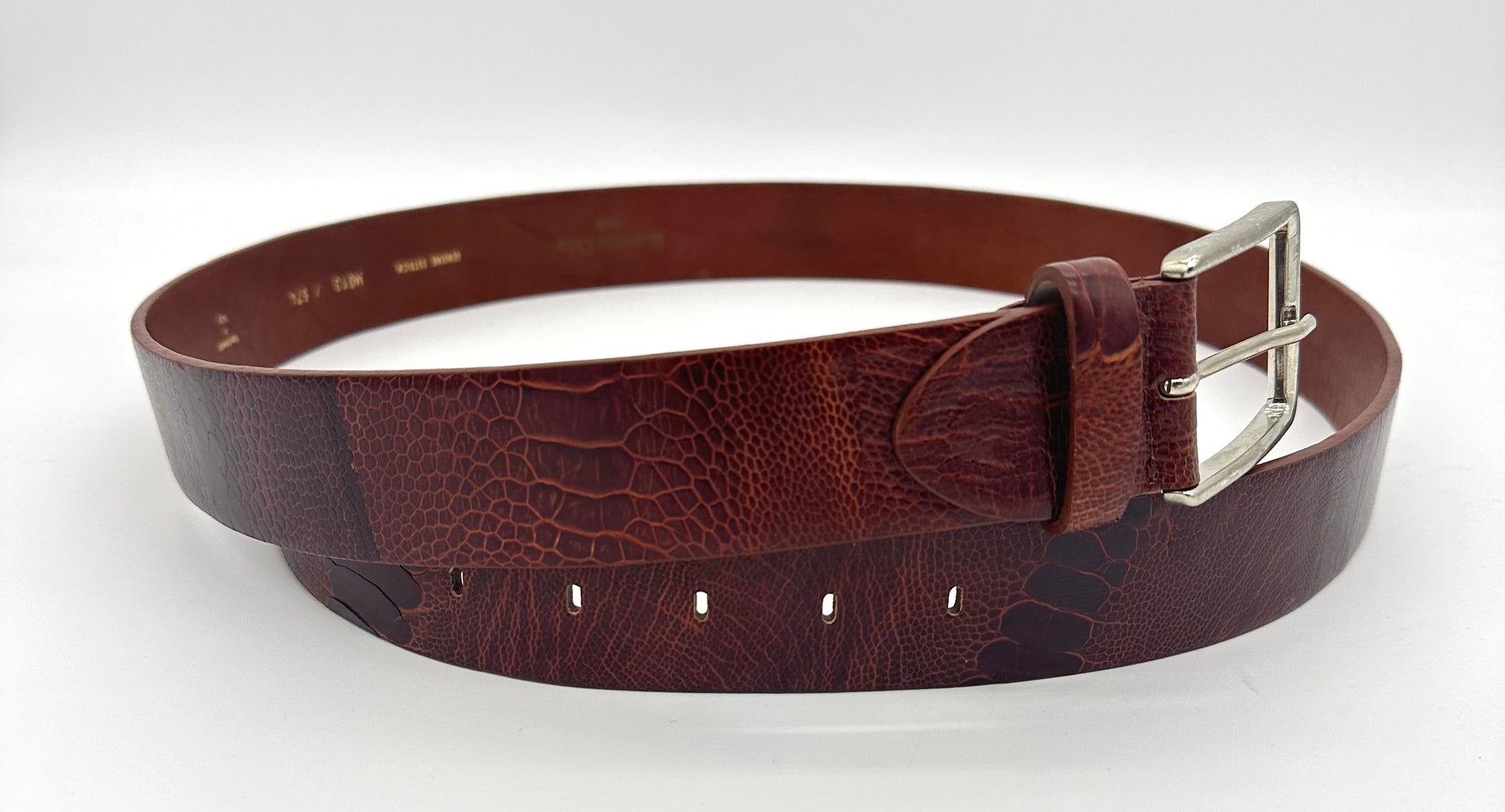 Ceinture Roberto Celk en pâte d’autruche bordeaux avec boucle en argent. Fabriqué à la main en Italie.