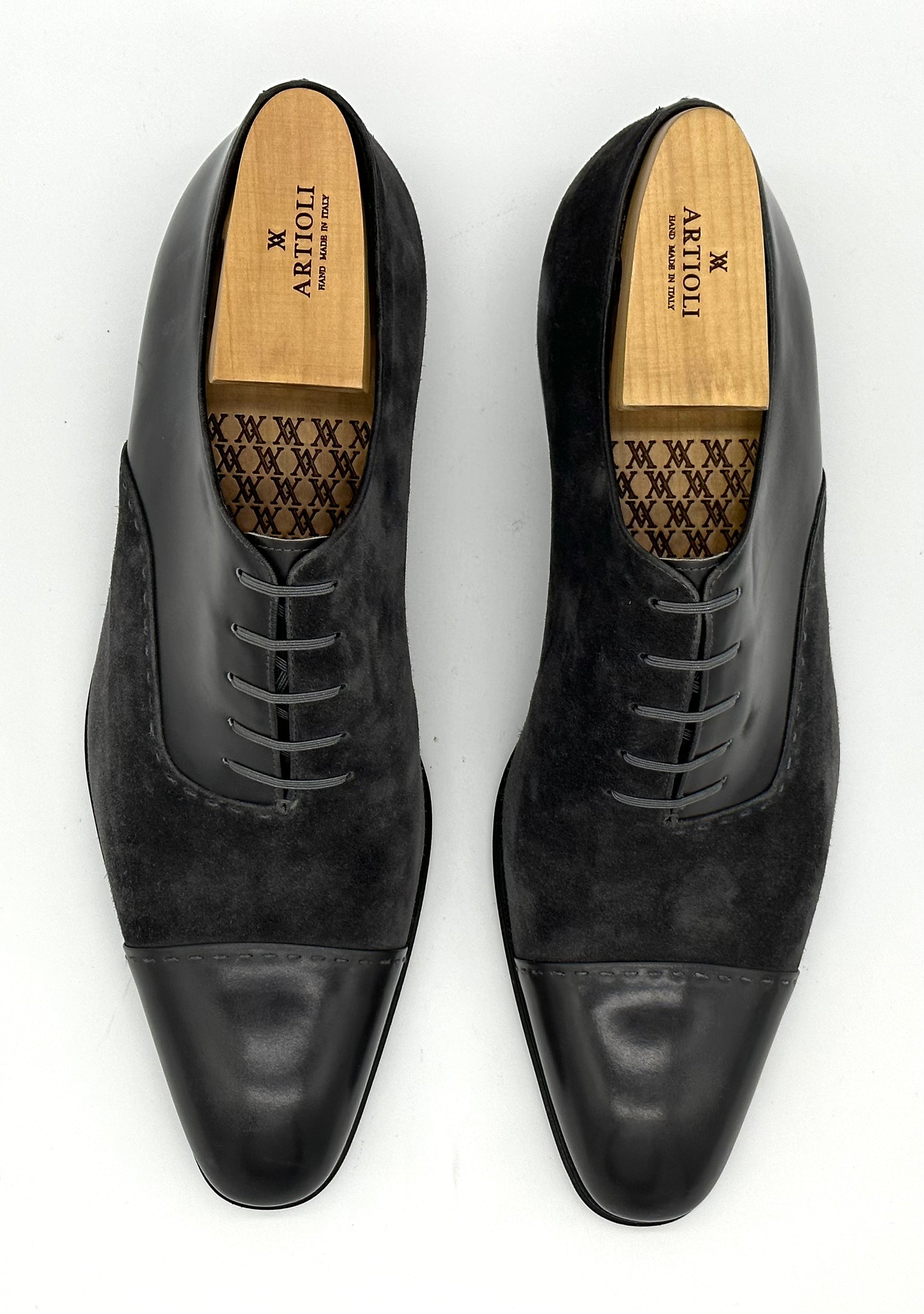 Richelieu Artioli en cuir et daim gris.