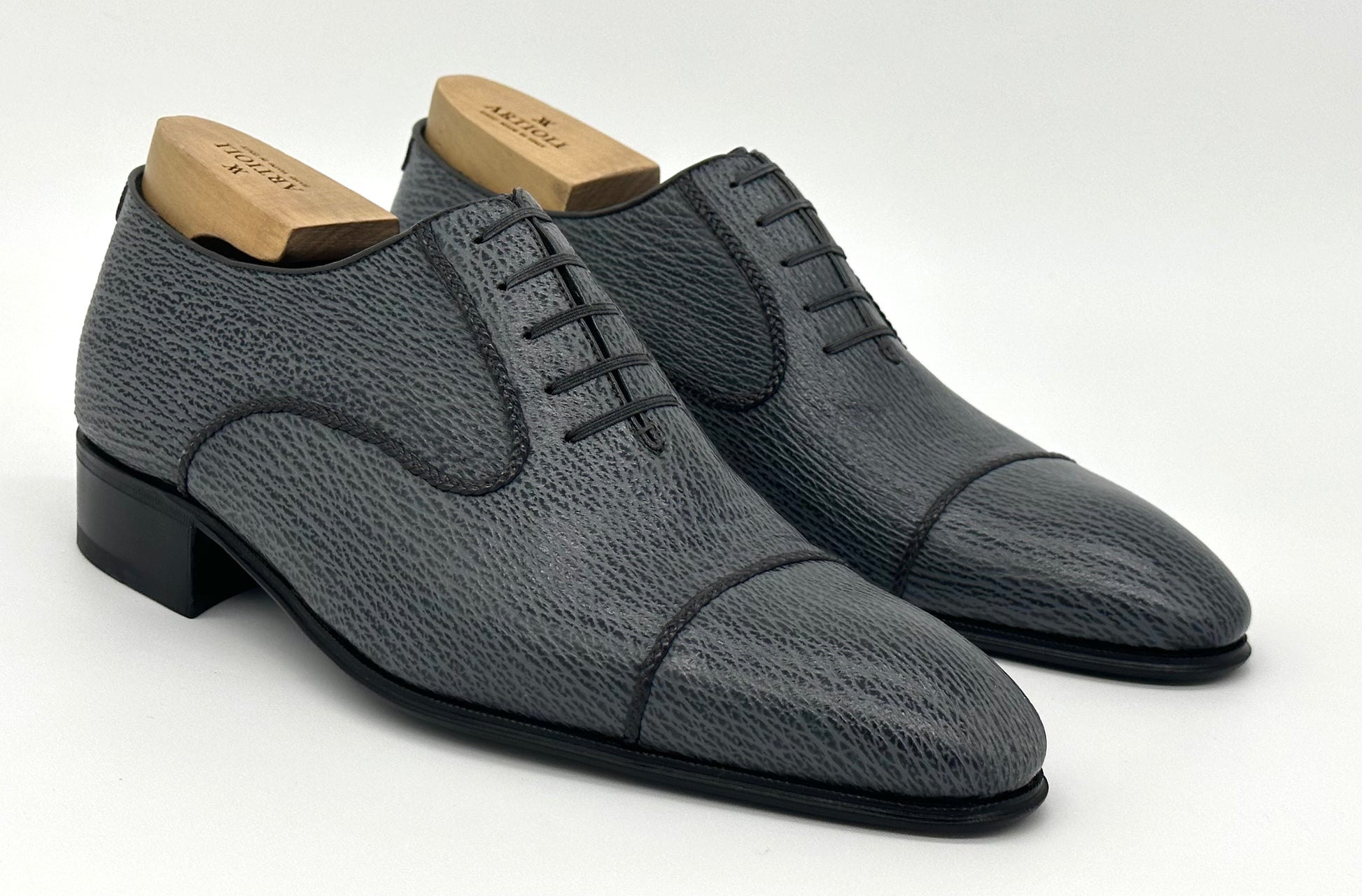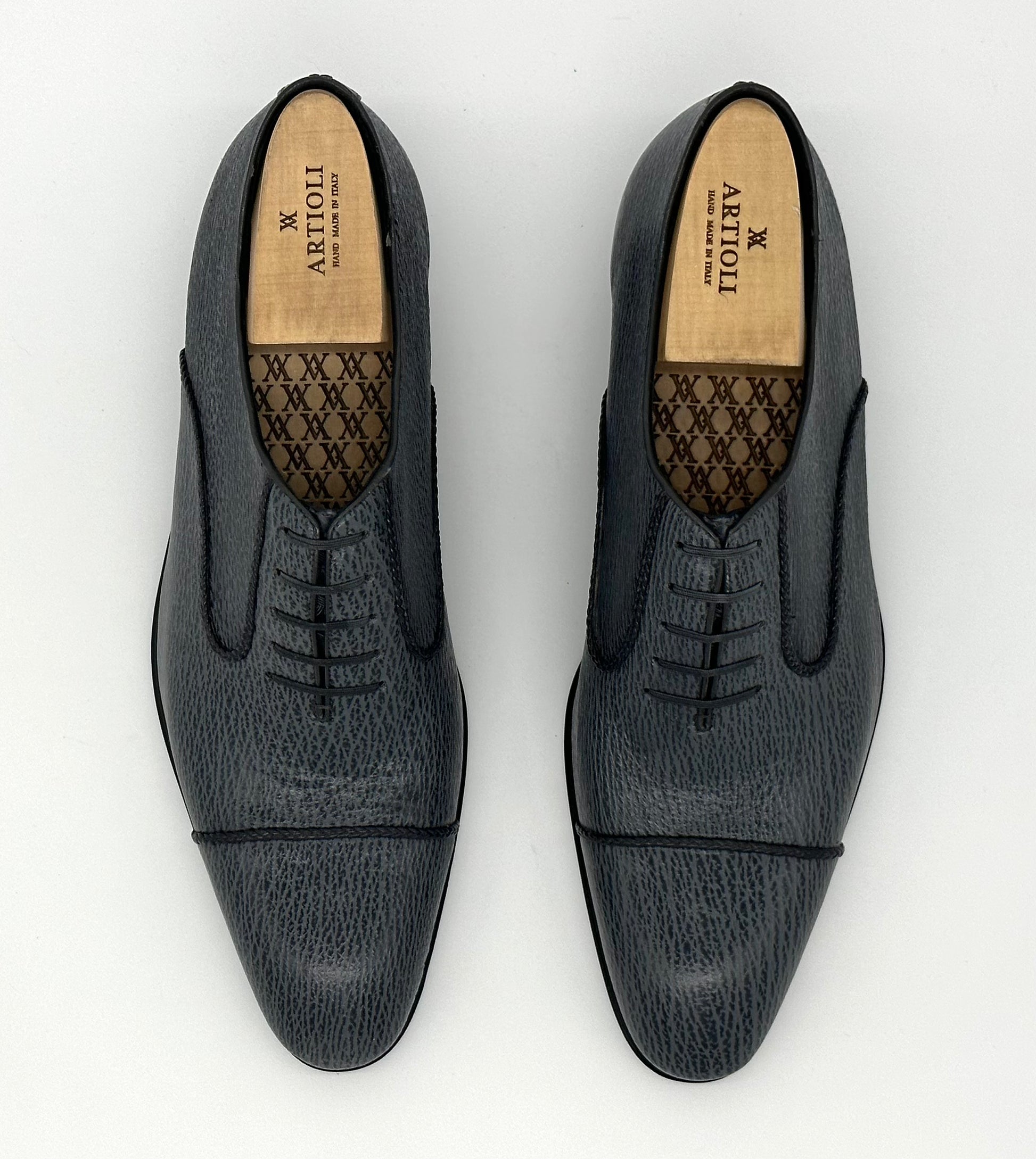Richelieu Artioli à bout rapporté en requin gris . Laçage élastique.