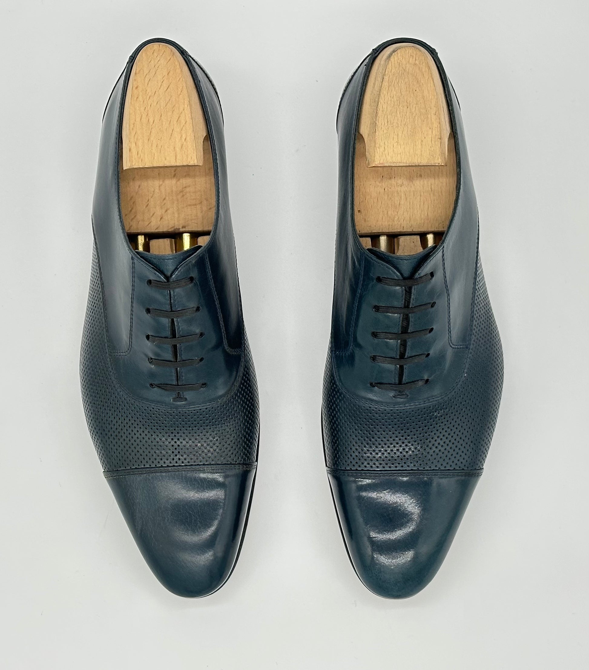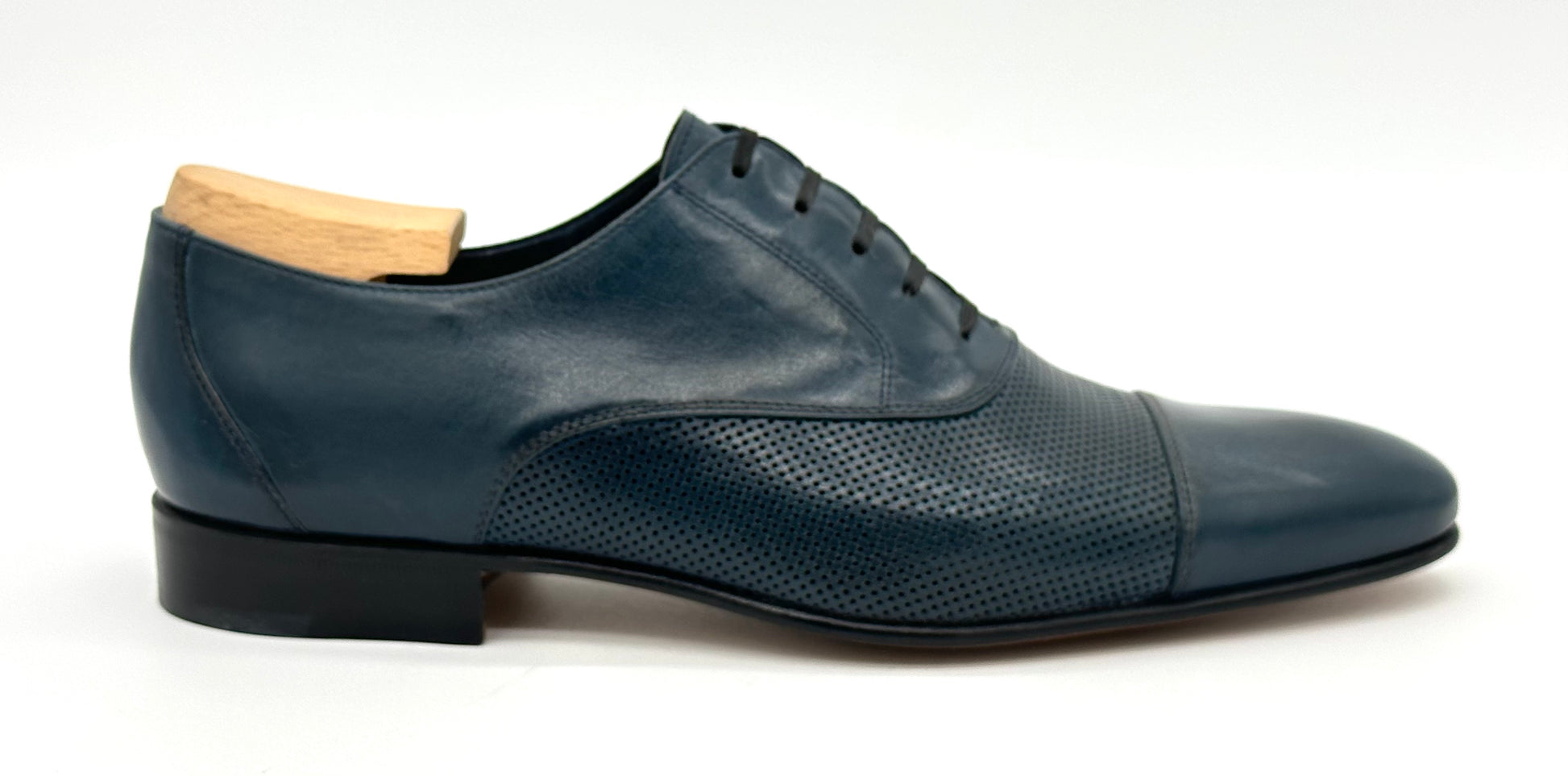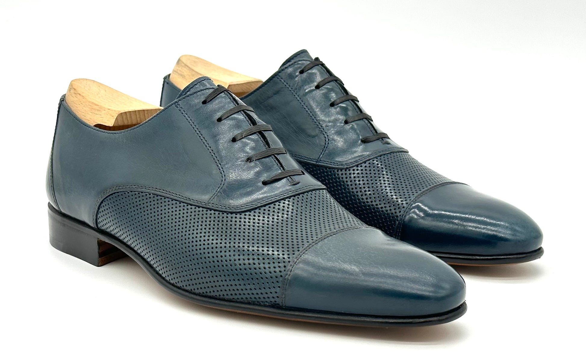 Richelieu Roberto Celk en cuir bleu canard perforé.