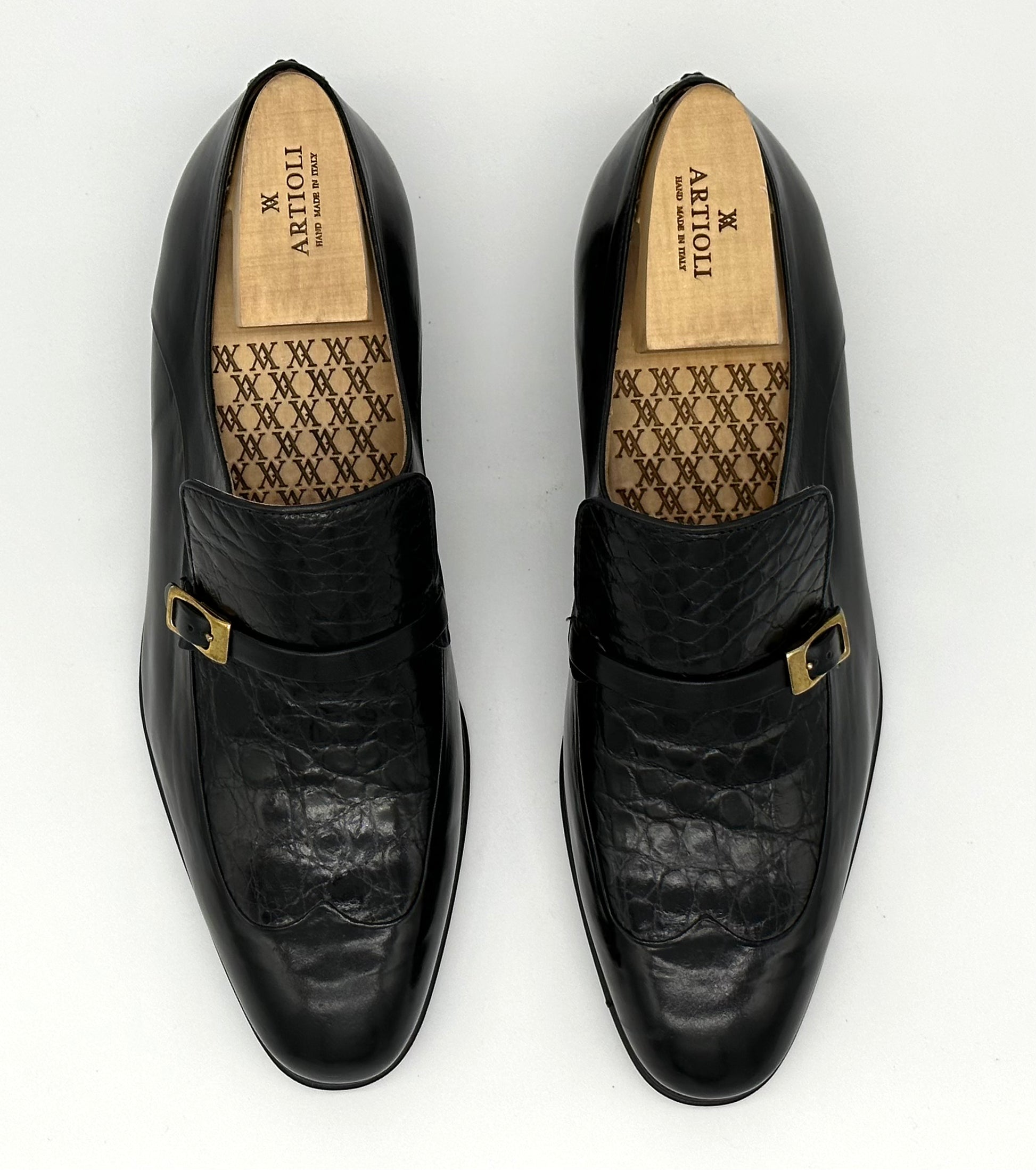 Soulier à boucle Artioli en cuir et crocodile noir