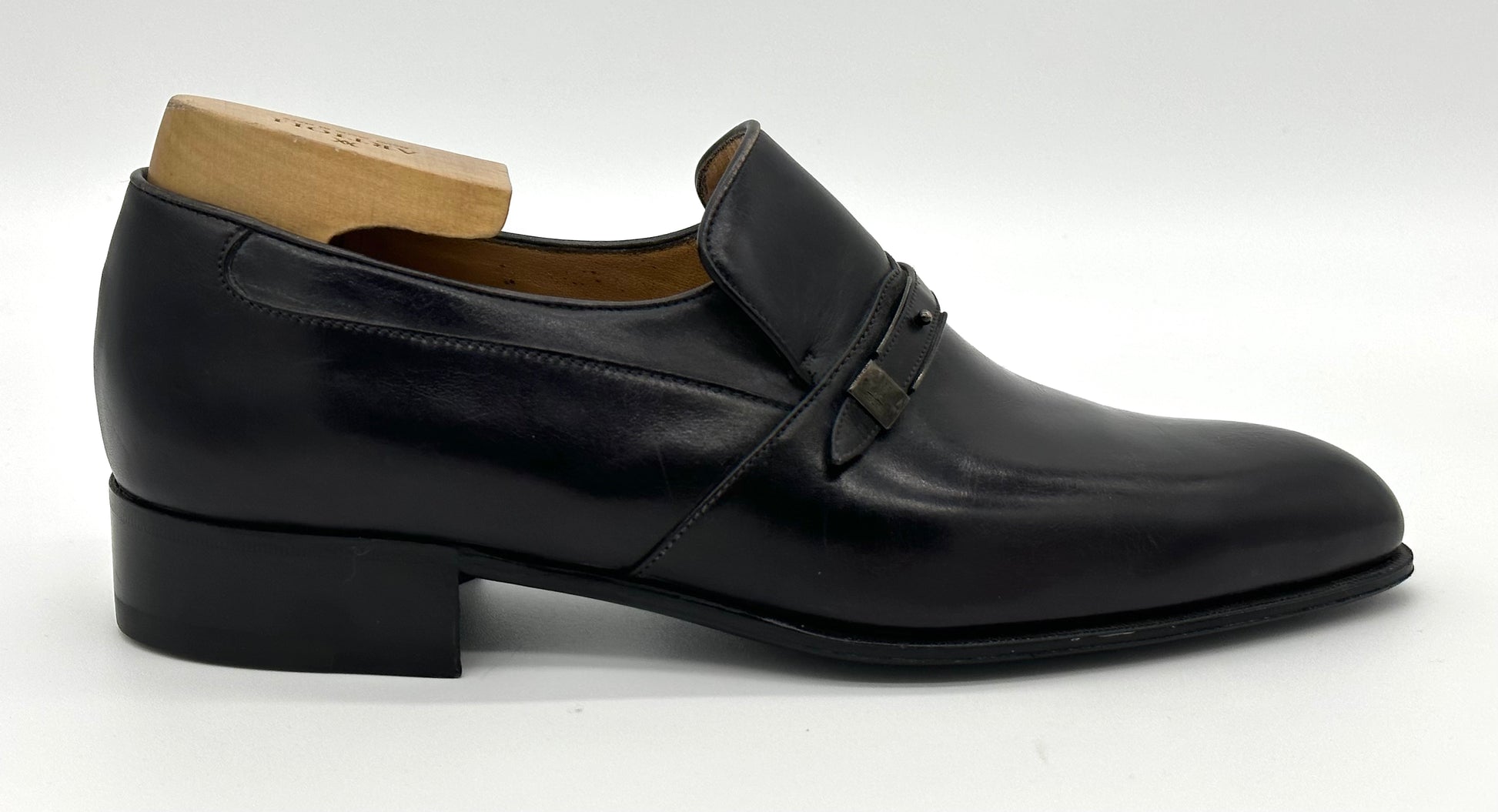 Soulier Artioli en cuir noir.